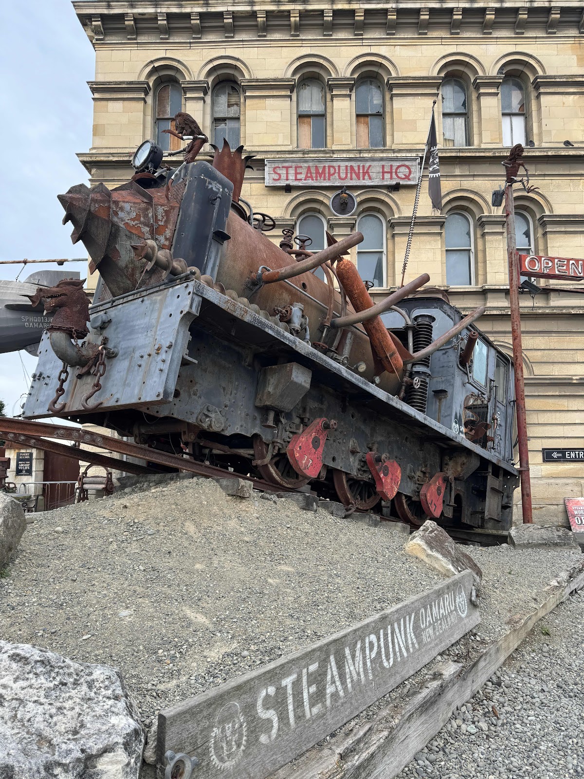 We drove southeast from Mt. Cook National Park to Dunedin, transitioning from the southern Alps to rolling hills to pastureland along the ocean. We stopped at the quirky town of Oamaru. It’s the self-proclaimed steampunk capital of New Zealand. (I had to look it up - “a sub genre of science fiction that incorporates retro futuristic technology…inspired by 19th-century industrial steam-powered machinery”)