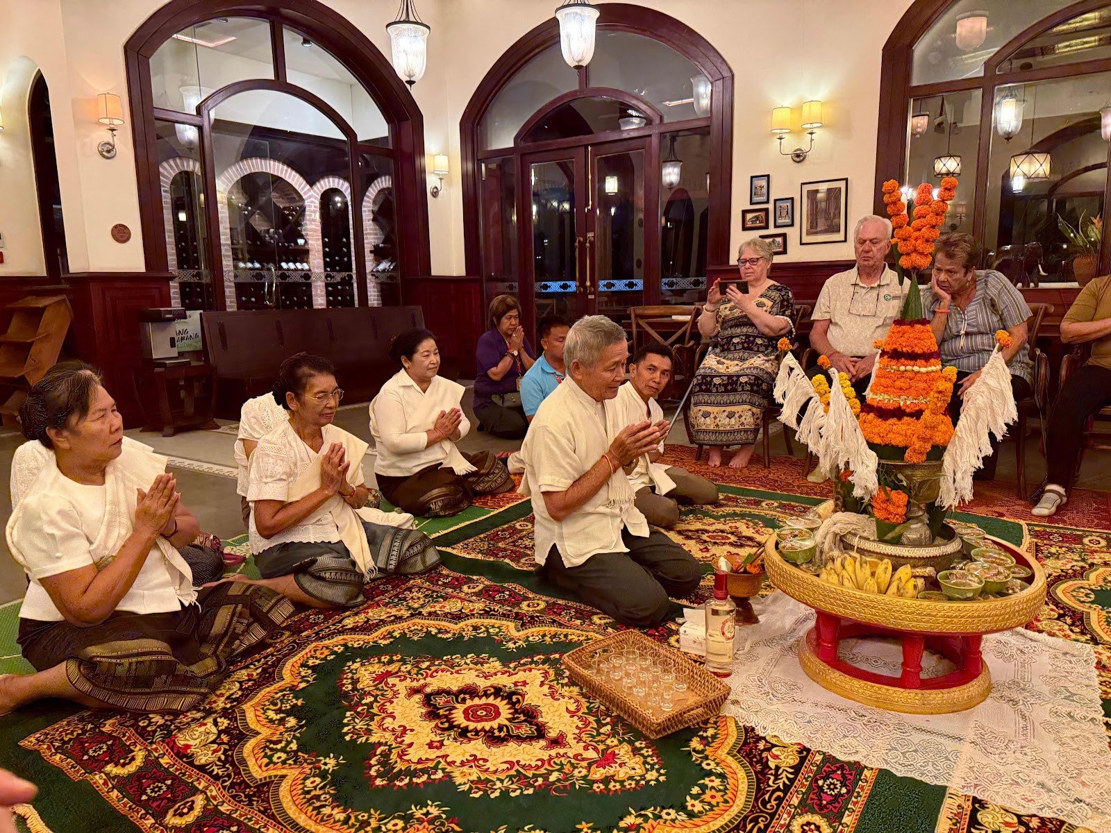 We were welcomed at our Laos hotel with a Baci ceremony by locals. The ceremony is usually conducted on a lunar calendar schedule, or to confer good fortune on special occasions such as a wedding, child’s naming day (35 days old), for a new job, or in friendship.